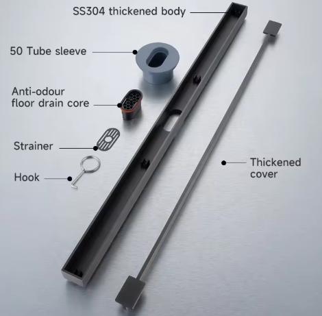 Gun Gray Brushed 3.2*60cm Stainless steel floor drain