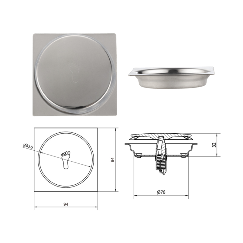 Silver 9.4*9.4cm stainless steel floor drain